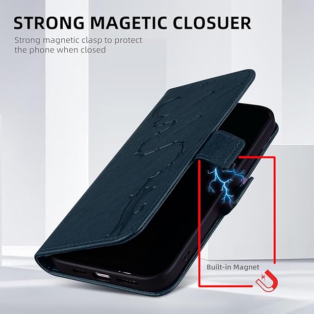 商品名:らくらくスマートフォン a A401FC/Lite MR01 ケース 手帳型 RakuRaku A401FC スマホケース スタンド機能 マグネット FCNT らくらくスマートフォン a ケース カード収納 耐衝撃 全面保護 可愛い 猫柄 柔らかいTPU ONETHEFUL らくらくスマートフォン Lite MR01 ケース 適応 6.3 インチ - 濃紺