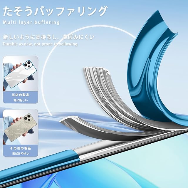 【全面保護】高品質TPU素材は弾力があるので、突然の落下からのダメージを軽減し。高耐衝撃構造で作られ、落下時に発生する衝撃を各コーナー部の内側で効果的に吸収し、保護機能を最大化します。縁を高くした設計とカメラガードレンズフレームにより、携帯電話のスクリーンとカメラを傷などから保護します。マイクロドット加工で密着痕がつかず、効率よく排熱できます。