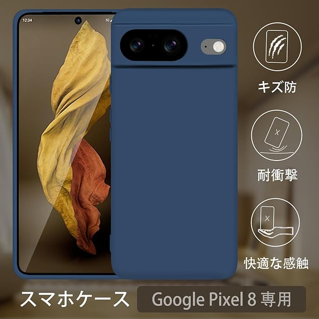 商品名:inxhey Google Pixel8 ケース シリコン 携帯カバー グーグル ピクセル 8 ケース 耐衝撃 スマホケース ストラップホール付き シリコーン マット質感 ソフトケース 持ちやすい 衝撃吸収 柔軟 軽量 薄型 携帯ケース (ブルー)