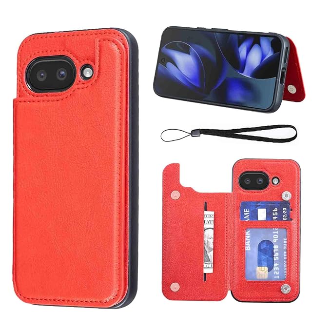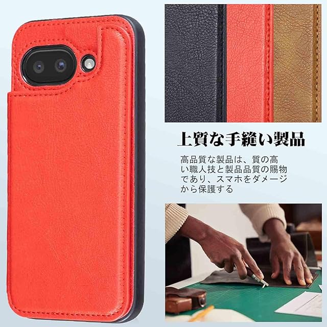 商品名:【Aqier】For Pixel 9A 用 レザーケース (レッド) グーグル ピクセル9a ケースカード入れ 片手操作 バックカバー pixel9a 赤色