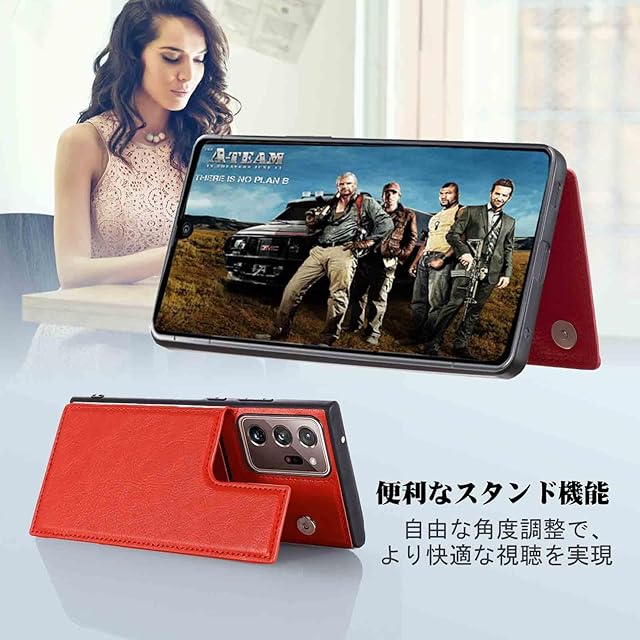 商品名:【Aqier】For Galaxy Note 20 Ultra 5G/docomo SC-53A/au SCG06/Note20 PLUS ケース 背面手帳型 軽い薄い 純色 レザーケース(レッド)ギャラクシーノート 20ウルトラ ドコモsc53a ケースカード入れ 片手操作 バックカバー サムスンnote20u 赤色