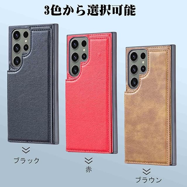【Aqier】For Galaxy S24 Ultra/docomo SC-52E / au SCG26 ケース 背面手帳型 軽い薄い 純色 レザーケース(レッド)サムスンscg26 ギャラクシー S24ウルトラ ドコモsc52e ケースカード入れ 片手操作 バックカバー サムスンS24u 赤色