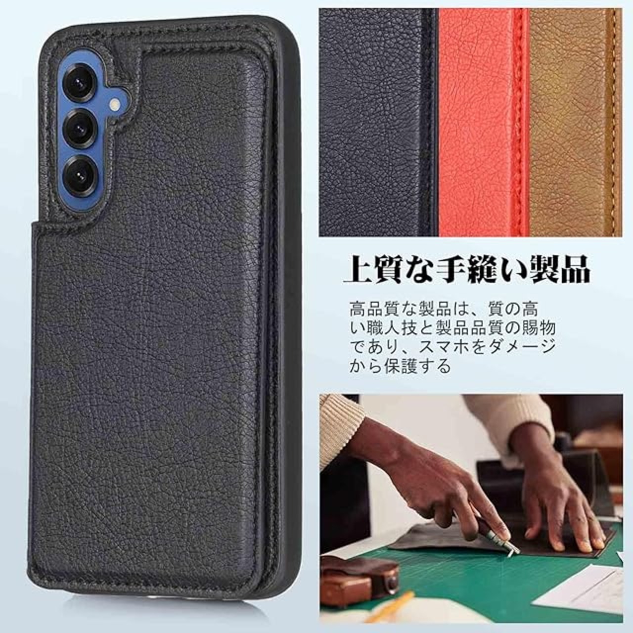 【上質素材】:耐久性のあるTPUと柔軟性のある上質レザーを採用されて、傷やカジリを防ぐことが出来ます。また、指紋、油分などもつきにくく、カメラレンズ保護構造でスマホ本体を傷から360度しっかり保護してくれます。