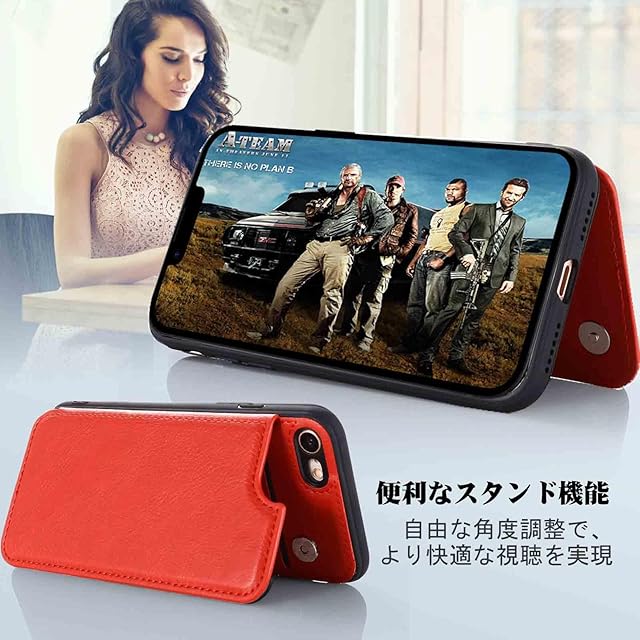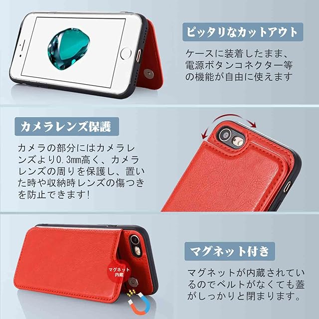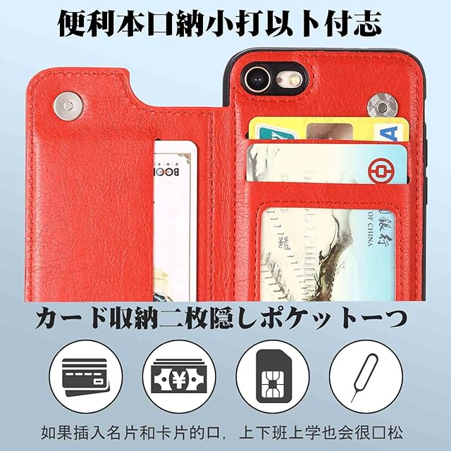 商品名:【Aqier】For iPhone SE 第2世代、iPhone7 iPhone8 ケース 背面手帳型 軽い薄い 純色 レザーケース(レッド)アップル あいふぉん7/8/2020 ケースカード入れ 片手操作 バックカバー アップル アイフォンse2020 赤色