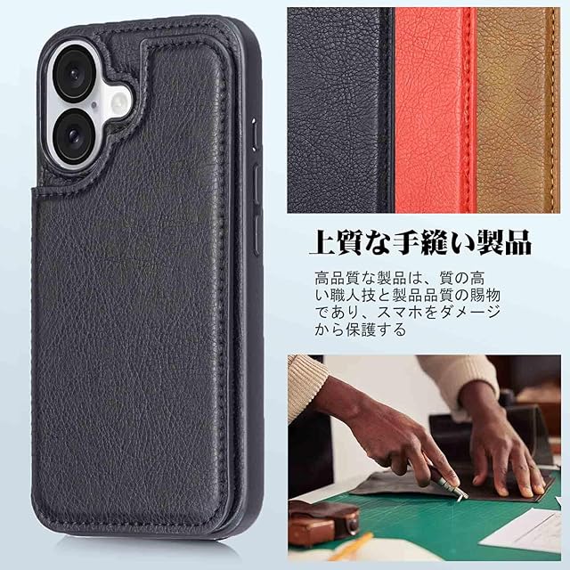 商品名:【Aqier】For iPhone 16 PLUS 6.7 inch ケース 背面手帳型 軽い薄い 純色 レザーケース(ブラック)アイフォン16プラス 6.7インチ ケースカード入れ 片手操作 バックカバー アップル アイフォン16plus 黒