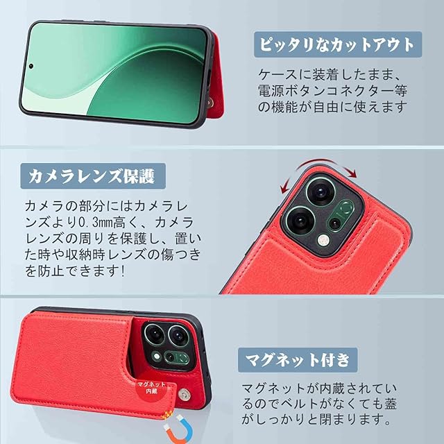 商品名:【Aqier】For Reno14 5G 用 背面ケース(レッド)オッポ リノ14 5g ケースカード入れ 片手操作 バックカバー オッポreno14 赤色