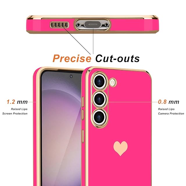 Teageo 適用 Samsung Galaxy S23 ケース対応 少女の 可愛い 愛心の形 メッキ加工保護ケース 薄型 TPU ワイヤレス充電対応 傷に強い 耐衝撃 落下防止 電話カバー Samsung Galaxy S23用 スマホケース(ローズレッド)