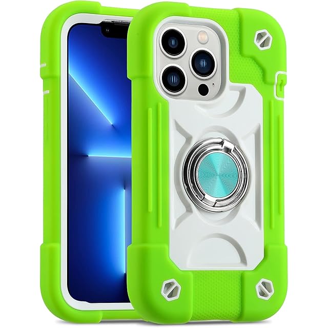 商品名:iPhone 15 Pro Max ケース 耐衝撃 頑丈 360度回転スタンド リング付き付き 虹色 かわいい アイフォン15 プロ マックス ケース 車載ホルダー対応 落下防止 ストラップホール付き アウトドア 子供 仕事用 (抹茶緑)