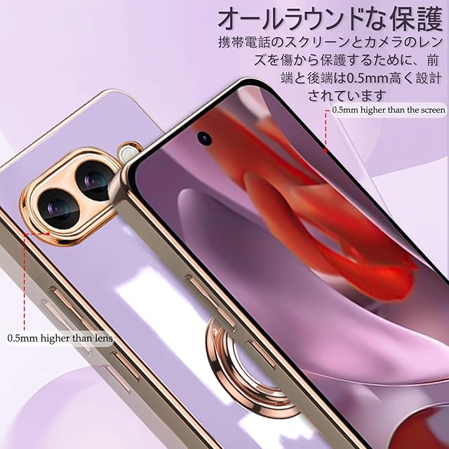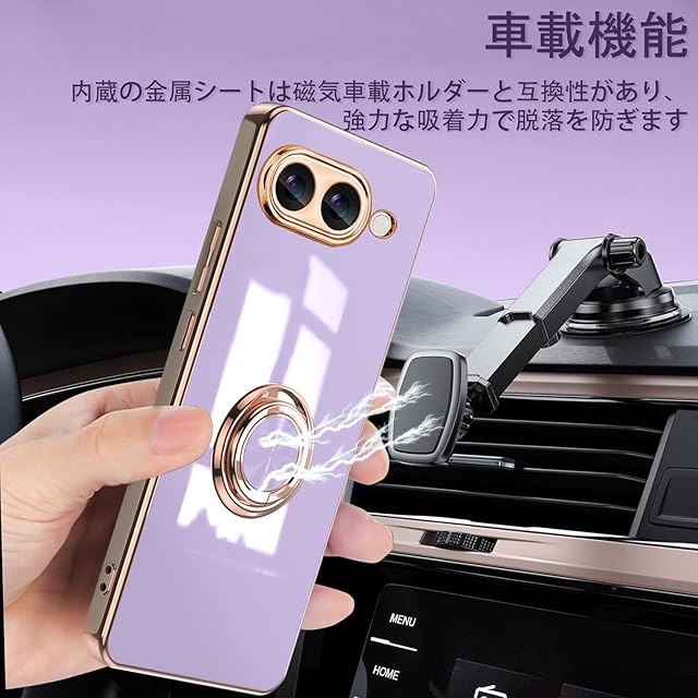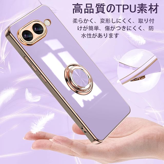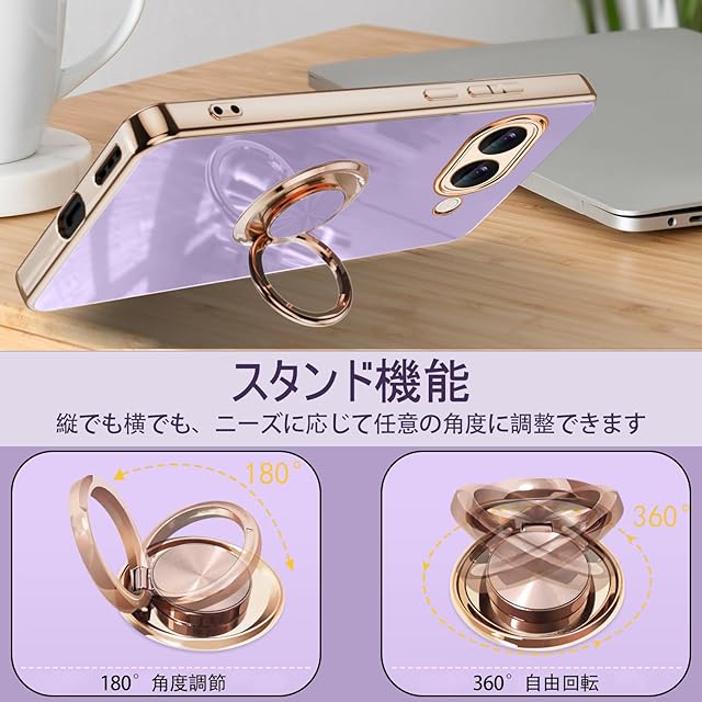 商品名:[ZoRoll] Google Pixel 9a 対応 ケース リング付き、カバー スマホケース Pixel9a TPU シリコン メッキ加工カバー 磁気吸着 軽量 薄型 人気 耐衝撃 タンド機能付き 360回転 車載ホルダー対応 グーグル ピクセル9a 用 カバー (パープル)