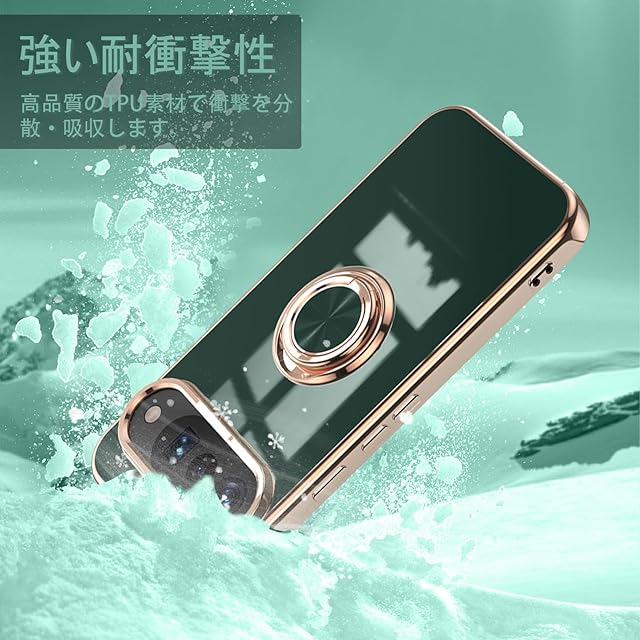 [リング付き スタンド機能] 360°回転可能なリングホルダーは、片手で操作しやすく、滑り止め、ひったくり、落下防止などのたくさんのメリットがあります。スタンド機能により、180角度調節自由、携帯電話を立てて、いつでもどこでも映画や音楽、FaceTimeなどのエンターテインメントを楽しむことができます。磁性車載ホルダを支持し、金属板を内蔵して設計し、車両磁石の使用を支持することができます(車載ホルダを含まない)。ご注意:ケースの真ん中に磁気がありますので、直接にワイヤーレス充電ができませんので、ケースを取り外してから充電できます。