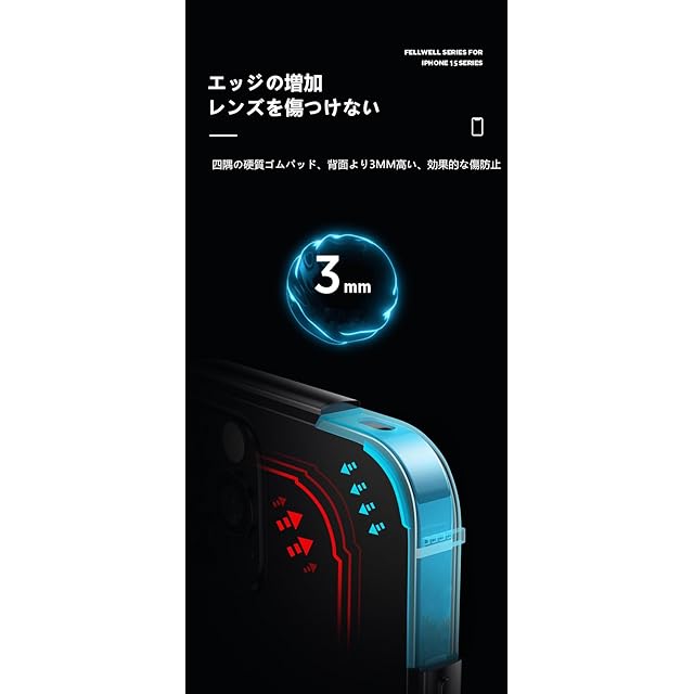 【レンズ保護デザイン】四隅のフチが高く設計されているので、平らな場所に置いたときにスクリーンやカメラレンズが擦れたり、傷ついたりするのを効果的に防ぐことができます。