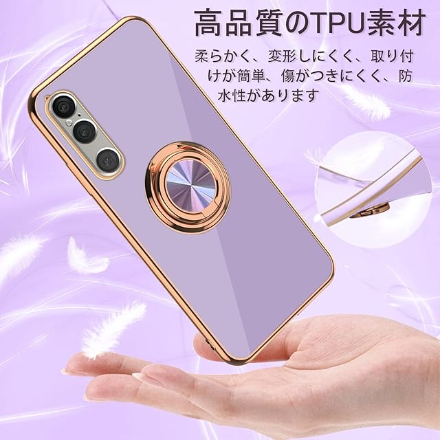 [ZoRoll] Sony Xperia 1 VI 対応 ケース リング付き、SO-51D SOG10 A301SO XQ-DQ44 カバー スマホケース エクスペリア1 VI TPU シリコン メッキ加工ケース 磁気吸着 軽量 薄型 人気 耐衝撃 タンド機能付き 360回転 車載ホルダー対応 ソニー Xperia 1 VI 用 カバー (パープル)