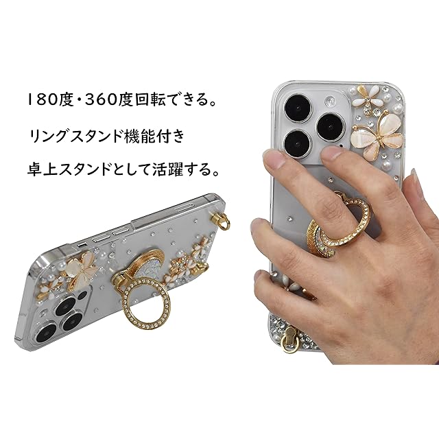 本体のカメラやフラッシュなどの位置によるケースの形状上デコレーションできない部分がございます。またこの原因でストーンやパーツの配置の差異が生じる場合がありますので、注意してご注文ください。ケース?を装着したまま、電源ボタン、音量ボタン、コネクター等の機能が自由に使えます。