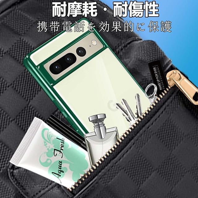 【Fuleeyuhn】Google Pixel 7pro ケース クリア 耐衝撃 黄変防止 耐久性 ピクセル 7pro カバー 透明 TPU素材 薄型 軽量 落下防止 擦り傷防止 スマホケース ストラップホール付き ワイヤレス充電対応 ピクセル 7pro 携帯ケース 6.7インチ(ダークグリーン)