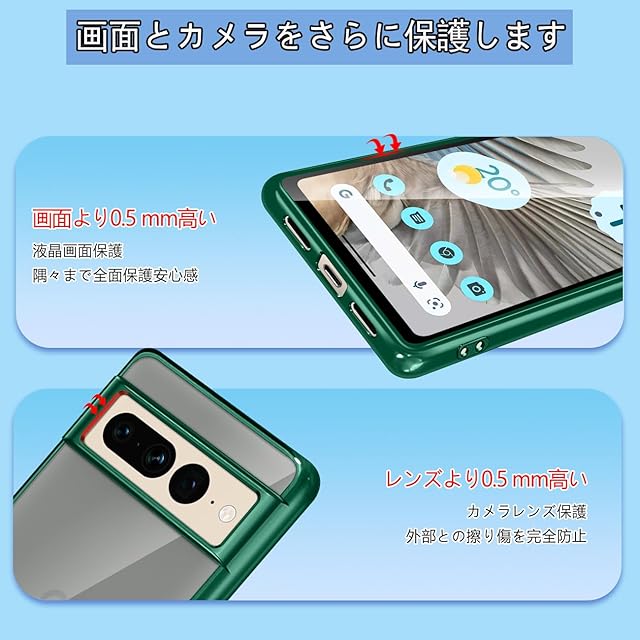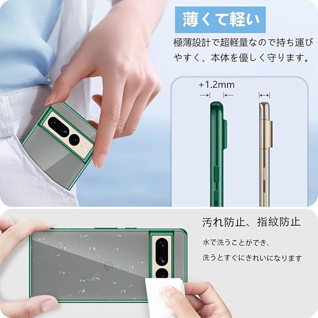 商品名:【Fuleeyuhn】Google Pixel 7pro ケース クリア 耐衝撃 黄変防止 耐久性 ピクセル 7pro カバー 透明 TPU素材 薄型 軽量 落下防止 擦り傷防止 スマホケース ストラップホール付き ワイヤレス充電対応 ピクセル 7pro 携帯ケース 6.7インチ(ダークグリーン)
