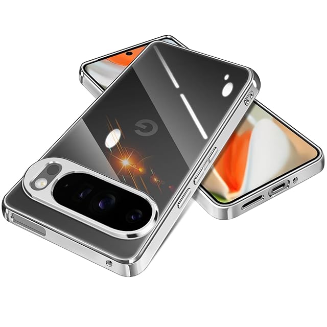 【Fuleeyuhn】Google Pixel 9pro XL ケース クリア 耐衝撃 黄変防止 耐久性 ピクセル 9pro XL カバー 透明 TPU素材 薄型 軽量 落下防止 擦り傷防止 スマホケース ストラップホール付き ワイヤレス充電対応 6.8インチ(シルバー)