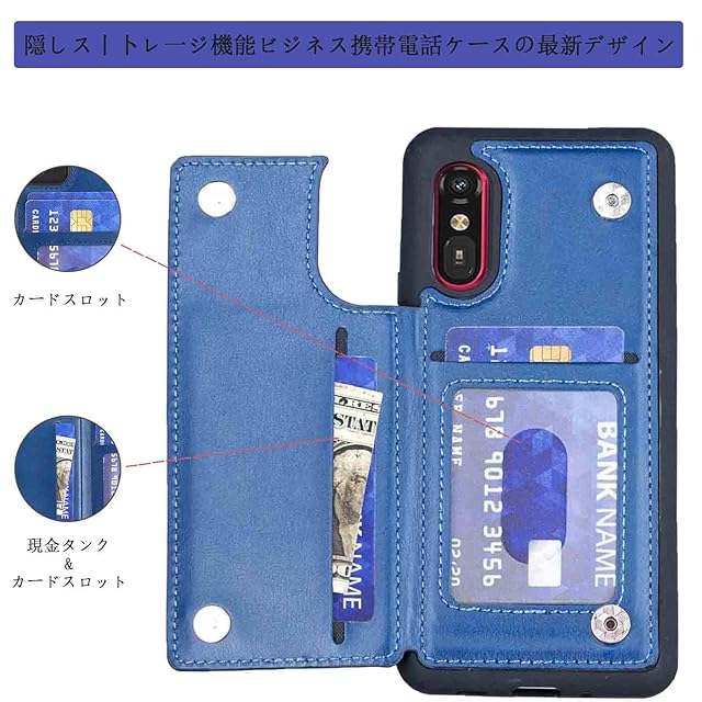 【Aqier】カバー 用 らくらくスマートフォン a A401FC/Lite MR01 ケースカード (ネイビーブルー) アローズa401fc スマホケース 背面カード 収納 軽量 多機能 ケース 手帳型 富士通mr01 BLUE