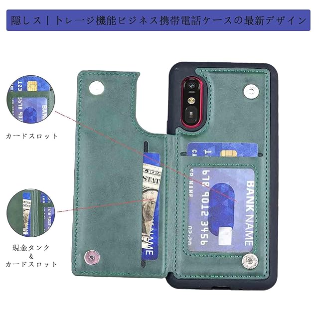 【Aqier】カバー 用 Basio Active3 KYG04 ケースカード (ダルグリーン)ベイシオ アクティブ3 スマホケース 背面カード 収納 軽量 多機能 ケース 手帳型 京セラactive3 GREEN
