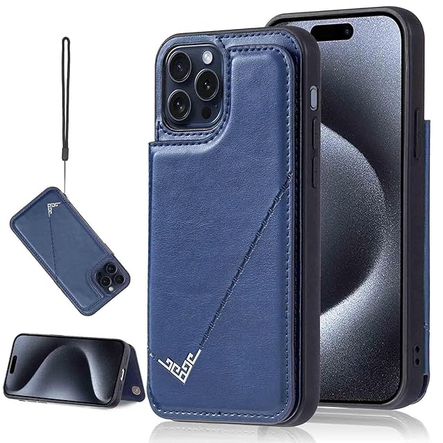 【Aqier】カバー 用 iPhone 15 6.1 inch ケースカード (ネイビーブルー)アイフォン15 6.1インチ スマホケース 背面カード 収納 軽量 多機能 ケース 手帳型 IPHONE15 BLUE