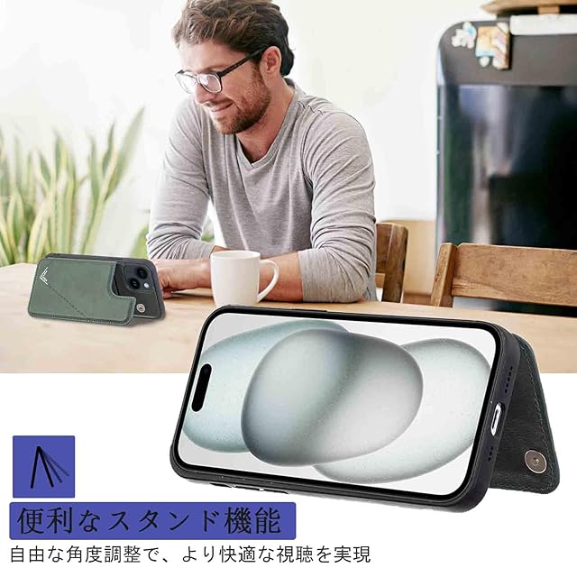 商品名:【Aqier】カバー 用 iPhone 16 6.1 inch ケースカード (ダルグリーン)アイフォン16 6.1インチ スマホケース 背面カード 収納 軽量 多機能 ケース 手帳型 IPHONE16 GREEN