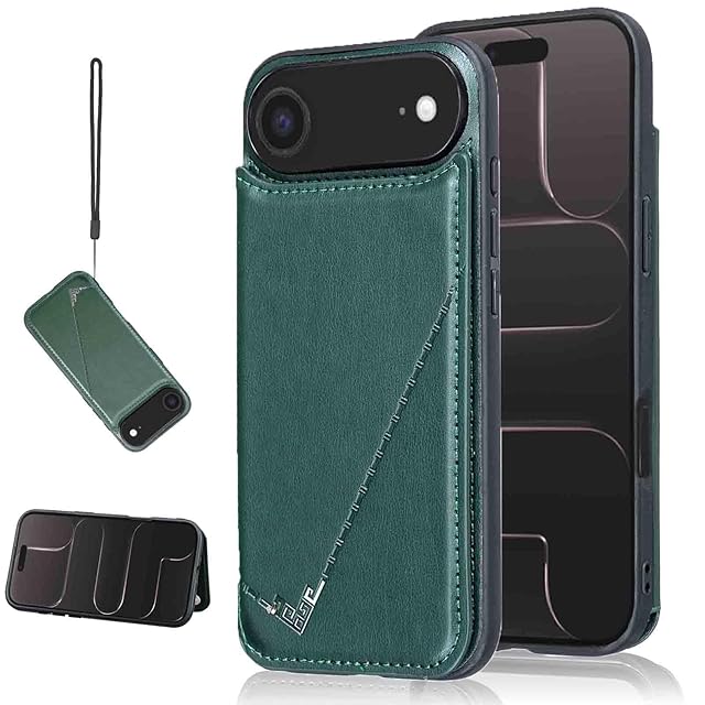 【Aqier】カバー 用 iPhone Air/17Air 6.5 inch ケースカード (ダルグリーン)アイフォン エアー 6.5インチ スマホケース 背面カード 収納 軽量 多機能 ケース 手帳型 アイフォンair GREEN