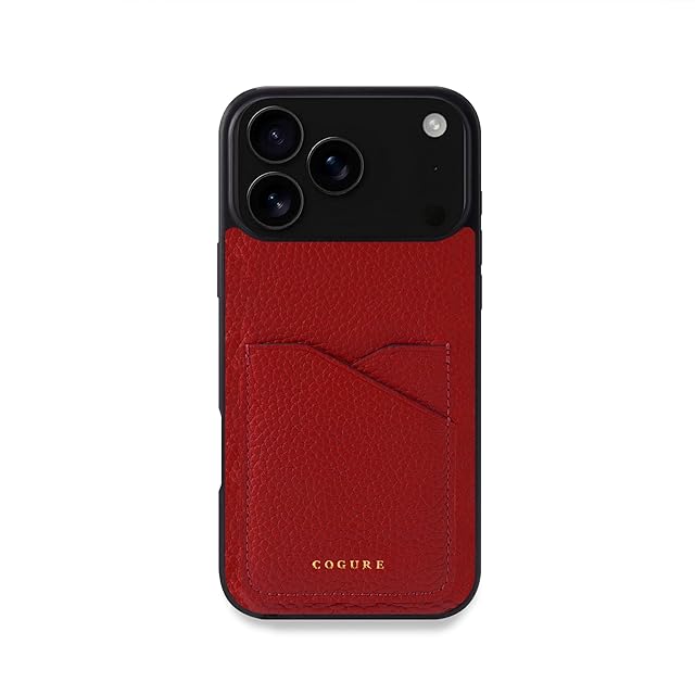 COGURE スマホケース 互換 iPhone17 ProMax ケース 本革 シュリンクカーフレザー カード入れ TPUケース シンプル おしゃれ 専用ボックス付き COPC2 レッド