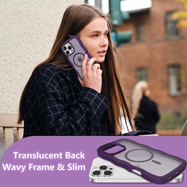 ZTOFERA iPhone 16 Plusケース用,【MagSafe対応】キュートなウェーブの半透明マットスマホケース 女性用 女の子用 男性用 iPhone 16 Plusケース,ダーク・パープル