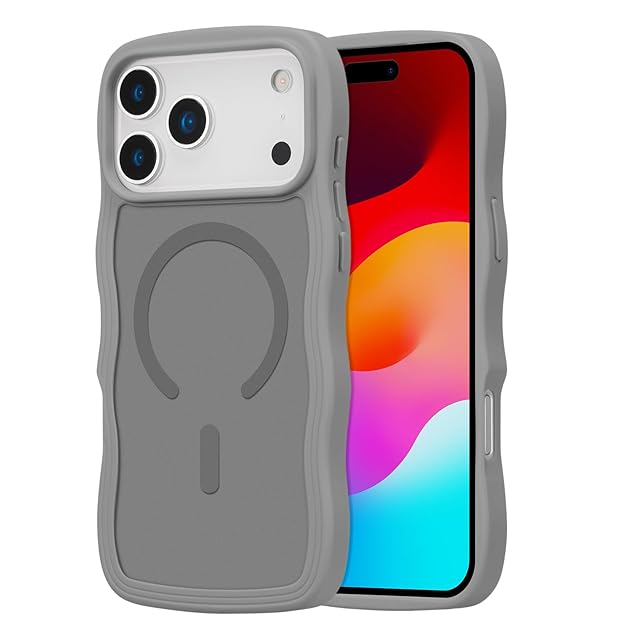 ZTOFERA iPhone 17 Pro Maxケース用,【MagSafe対応】キュートなウェーブの半透明マットスマホケース 女性用 女の子用 男性用 iPhone 17 Pro Maxケース,グレー