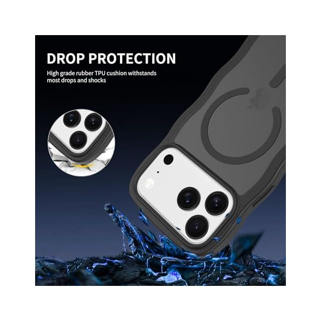 ZTOFERA iPhone 17 Pro Maxケース用,【MagSafe対応】キュートなウェーブの半透明マットスマホケース 女性用 女の子用 男性用 iPhone 17 Pro Maxケース,ブラック