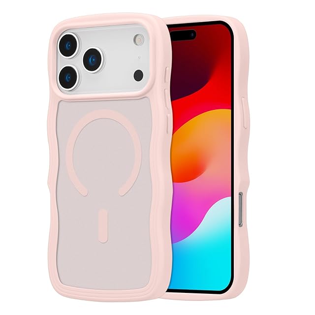 ZTOFERA iPhone 17 Proケース用,【MagSafe対応】キュートなウェーブの半透明マットスマホケース 女性用 女の子用 男性用 iPhone 17 Proケース,ピンク