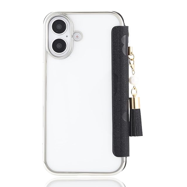 アイフォン 16 Plus ケース 手帳型 クリアタイプ 薄型 カード入れ 型押しマウス キャラクター 女性 iPhone16Plus 携帯カバー 手帳型 可愛い オシャレ 背面クリア 使いやすい Befortwo アイホン 16 プラス スマホカバー 透明 かわいい ワイヤレス充電 iPhone16Plus 手帳型ケース 真珠タッセル付き マグネットなし スタイリッシュ 黒い