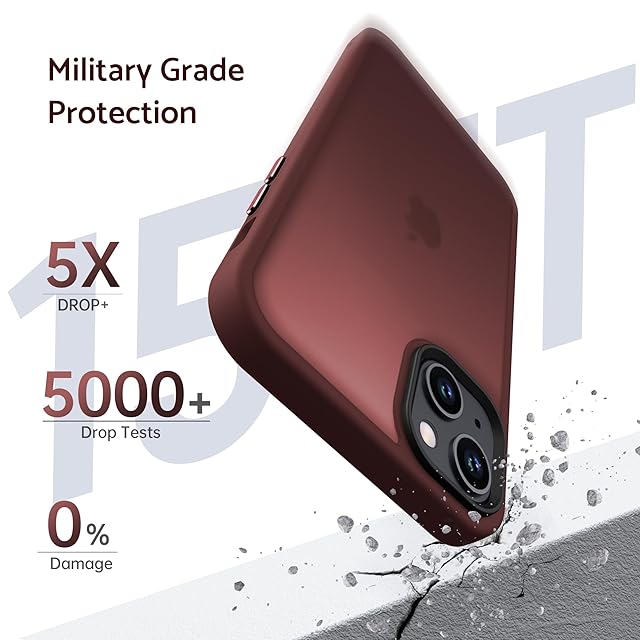 Anqrp iPhone 15 用 ケース 半透明 マット 耐衝撃 滑り止め 米軍MIL規格 指紋防止 スマホケース アイフォン 15 ストラップホール付き ワイヤレス充電対応 アイホン15 カバー 6.1インチ ワインレッド