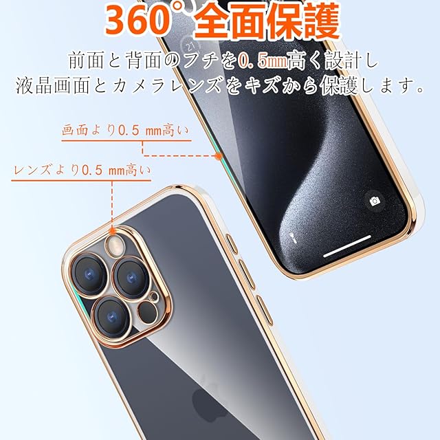 【 一体型レンズ保護カバー - 360°保護システム - すり傷防止 】携帯ケースに統合レンズ保護カバーは、レンズを完全にカバーして保護します。レンズ保護カバーの形状は iPhone のオリジナルデザインを損ねることなく、ボディと一体化しています。ケースの縁は、画面やレンズよりも0.5~1.2mm高く設計されています。 iPhone にこのケースをつけていれば平らな場所に置いても画面やケースの背面がおいた場所に触れることはなく、傷を最小限に抑えることができます。