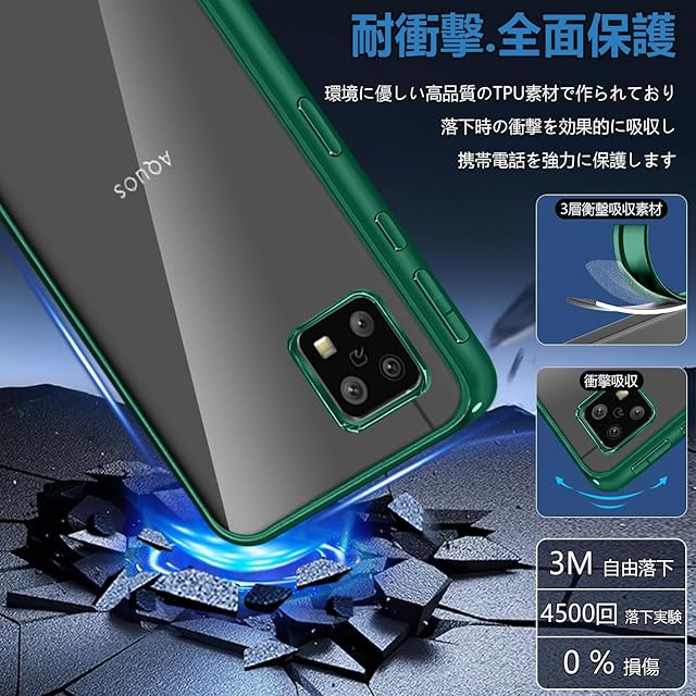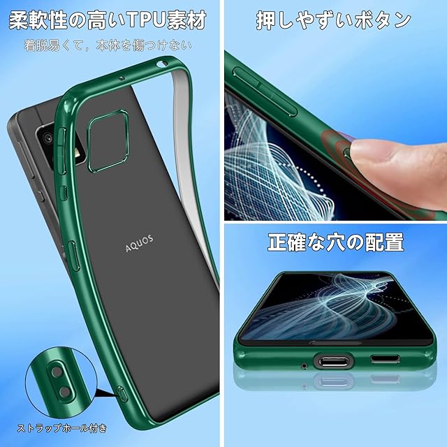 商品名:【FULEEYUHN】AQUOS Sense4 ケース / Sense5G ケース クリア 軽量 薄型 黄変防止 SH-41A SH-53A SH-M15 SHG03 対応 カバー 上質TPU素材 柔らかい手触[耐衝撃 レンズ保護 傷防止 落下防止 携帯便利]ストラップホール付き(ダークグリーン)