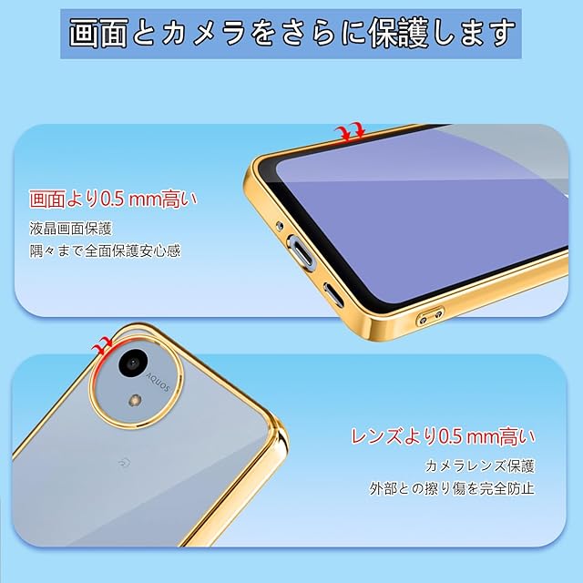 商品名:【FULEEYUHN】AQUOS wish4 ケース クリア 軽量 薄型 黄変防止 ウィッシュ4 カバー 透明 SH-52E SH-M27 対応 スマホケース 上質TPU素材 柔らかい手触 耐衝撃 レンズ保護 傷防止 落下防止 耐久性 ストラップホール付き(ゴールド)
