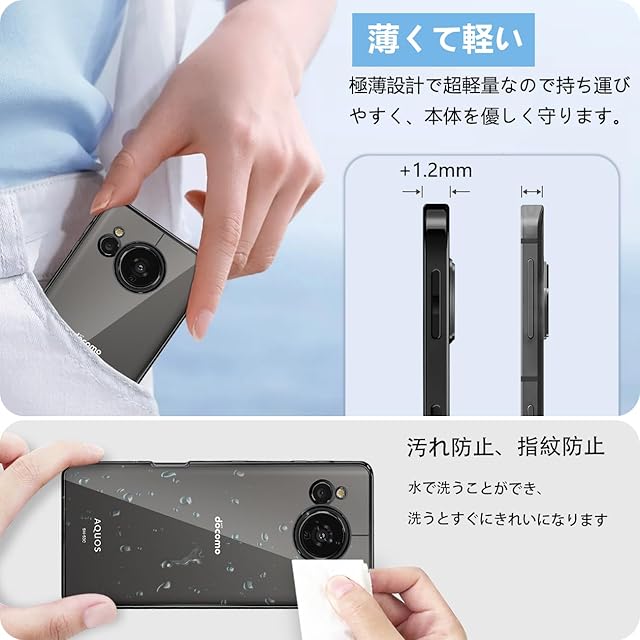 商品名:【FULEEYUHN】AQUOS Sense7 ケース クリア 軽量 薄型 黄変防止 センス7 カバー 透明 上質TPU素材 米軍MIL規格取得 SH-53C SHG10 SH-M24 対応 柔らかい手触 耐衝撃 傷防止 落下防止 携帯便利 耐久性 ストラップホール付き(ブラック)