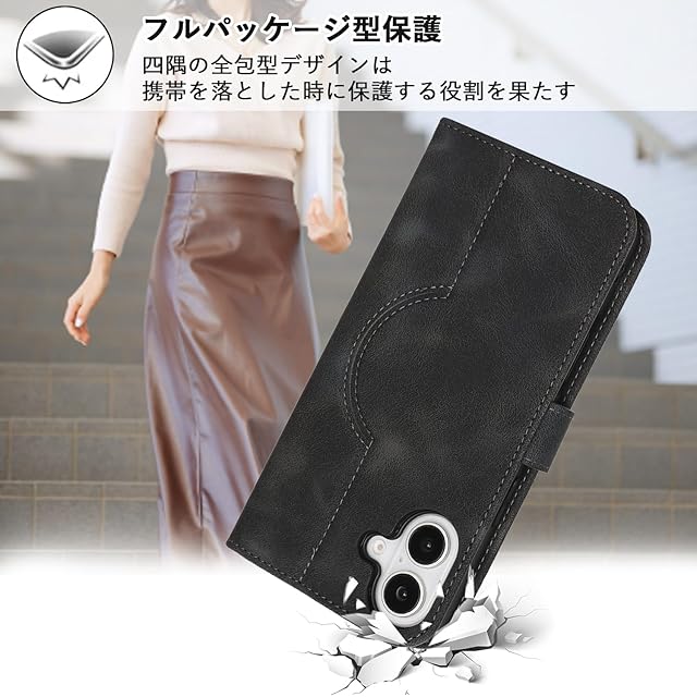 【Hamany】 対応 iPhone 16 ケース Magsafe対応 あいふおん16ケース 手帳型 ワイヤレス充電対応 カード収納 スタンド機能 マグネット式 スマホケース iphone 16 耐衝撃 耐久性 耐摩擦 アイフォン16 ケース マグネット式 レザー -スエードの質感ブラック