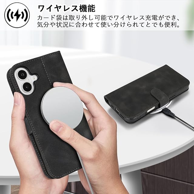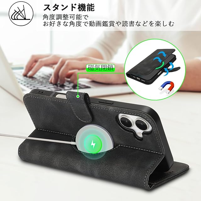 商品名:【Hamany】 対応 iPhone 16 ケース Magsafe対応 あいふおん16ケース 手帳型 ワイヤレス充電対応 カード収納 スタンド機能 マグネット式 スマホケース iphone 16 耐衝撃 耐久性 耐摩擦 アイフォン16 ケース マグネット式 レザー -スエードの質感ブラック