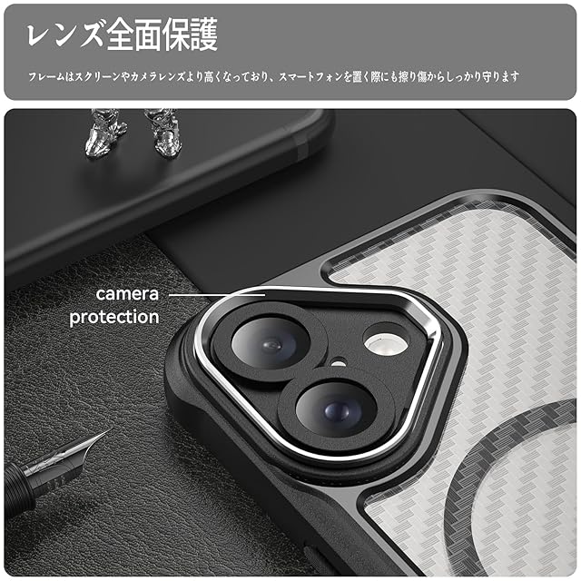 半透明ケース、カーボン調、MagSafe対応カバー、耐衝撃バンパー、本革より耐久性に優れ、色合い、光沢感、質感、肌触りなどから見て、高級感と落ち着きを溢れています。
