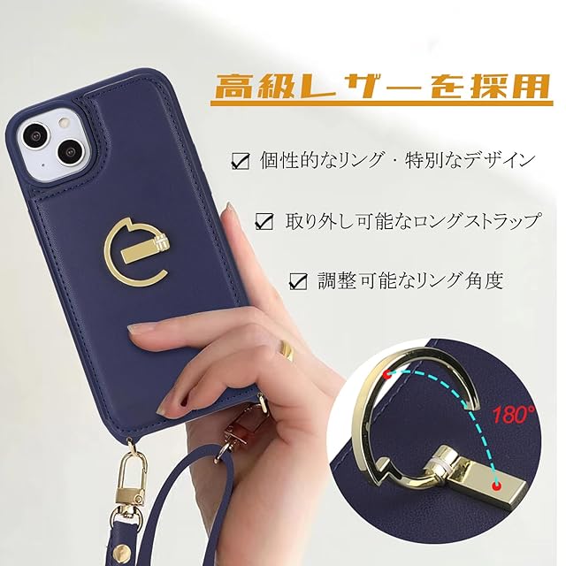 【携帯ケース対応機種】 iPhone 15 Plus★対応機種と画面サイズをよくご確認のうえ、ご購入いただけますようお願い致します。他のモデルの革製ケースが必要な場合は、タイトルの横にある[Havayaのストアを表示]をおクリックしてください。ヒント:製品は輸送中に破損することがあります。破損した製品や製品の品質問題を受け取ったことを後悔する場合は、まずカスタマーサービスに連絡してください。 【抜群な耐衝撃力】外部のPU+内部の耐衝撃性TPU素材という二重保護で、放熱性や耐衝撃性がよいします。変形しにくくまた、取り外しが簡単だ、本体を傷つける心配はありません。ケースを装着したまま、音量ブボタン、カメラ、コネクターなどのを自由に使えます。実用性が高いです。 【収納機能】内側に実用性のカード入れポケット×3、、カード類、現金、名刺、免許証入れなどを収納でき、通勤も通学にも楽々タイプです。 【リングの機能&スタンド機能】180度折りたためるリングホルダーです。一指着る式で、指がリングに通り抜け、片手で携帯を操作でき、落下防止します。リング.ホルダーの機能は携帯を横に放置できて、いつでもどこでも音楽、映画などの娯楽番組を思い切り楽しめます。 【ショルダーケース機能】長さ調節可能な肩ベルト付きで、肩からかけたり斜めにかけたりできます。うっかりスマホを紛失するリスクを軽減し、普段の日常生活や短期の旅行、アウトドアに最適です。