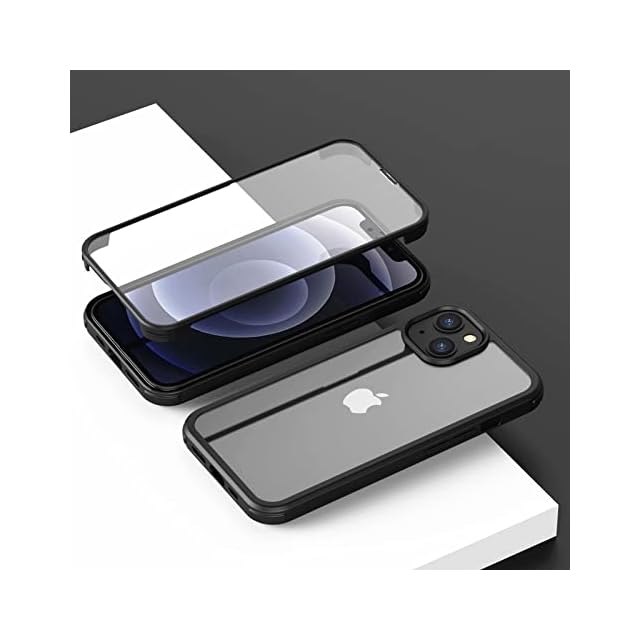 MQman iPhone13mini ケース 前面ガラス+背面ガラス 360°全面保護 100%画面タッチ感度 耐衝撃 強化ガラス フロント+バックプレート 軽量 ワイヤレス充電対応 前後 両面 カバー (iphone13mini用, ブラック)