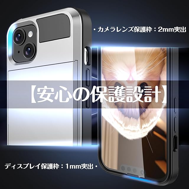 iPhone 15 用ケース カード収納 背面 全密閉式隠しカードホルダー設計 米軍MIL規格 耐衝撃最強 アイフォン15 用ケース カード背面収納 全面保護 指紋防止 滑り止め 落下防止 (シルバー)