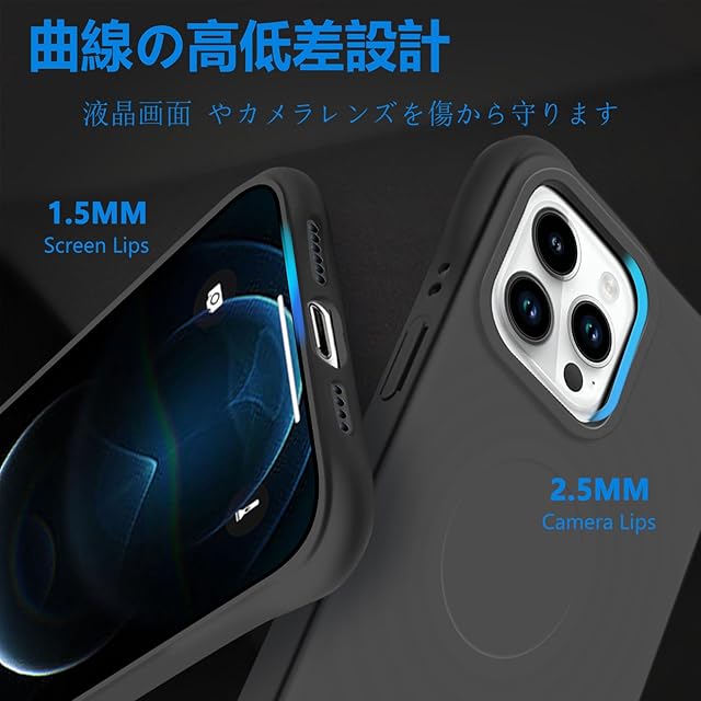 iPhone 12ProMax MagSafe対応 ケース 耐衝撃 米軍MIL規格 アイフォン12ProMax スマホケース シリコン 保護ケース いpほね12ProMax カバー ストラップホール付き 傷つけ防止 ワイヤレス充電対応 6.7インチ用(ブラック)