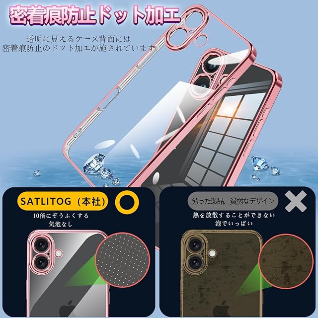 商品名:iPhone 16 Plus 用 ケース クリア 耐衝撃 アイフォン16Plus カバー 透明 メッキ加工 完全な保護 黄変防止 落下防止 ファッション 薄型 軽量 TPU 柔らかい ワイヤレス充電 人気 保護カバー(ローズゴールド)