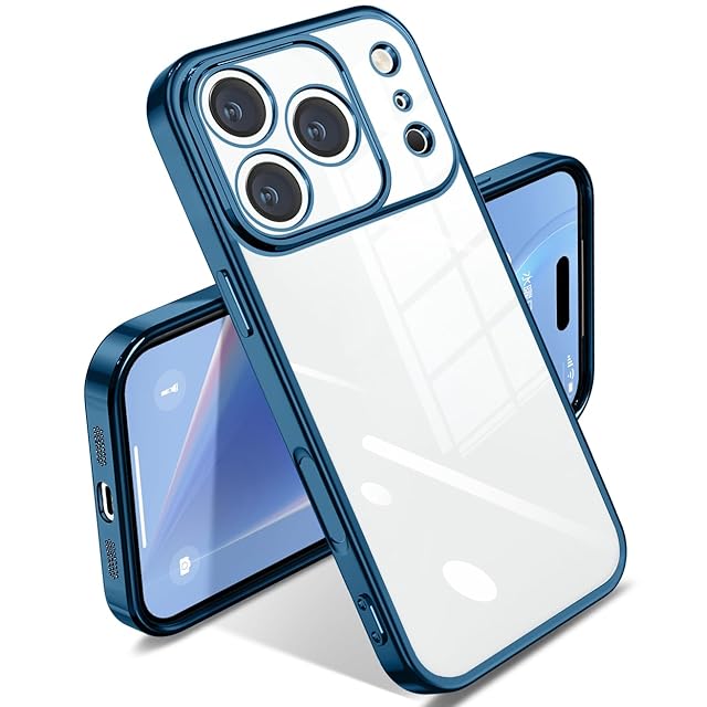 SATLITOG iPhone 17 Pro 用の ケース クリア 耐衝撃 アイフォン17 Pro 用の カバー 透明 スマホケース メッキ加工 完全な保護 黄変防止 落下防止 ファッション 薄型 軽量 TPU 柔らかい ワイヤレス充電 人気 (ブルー)