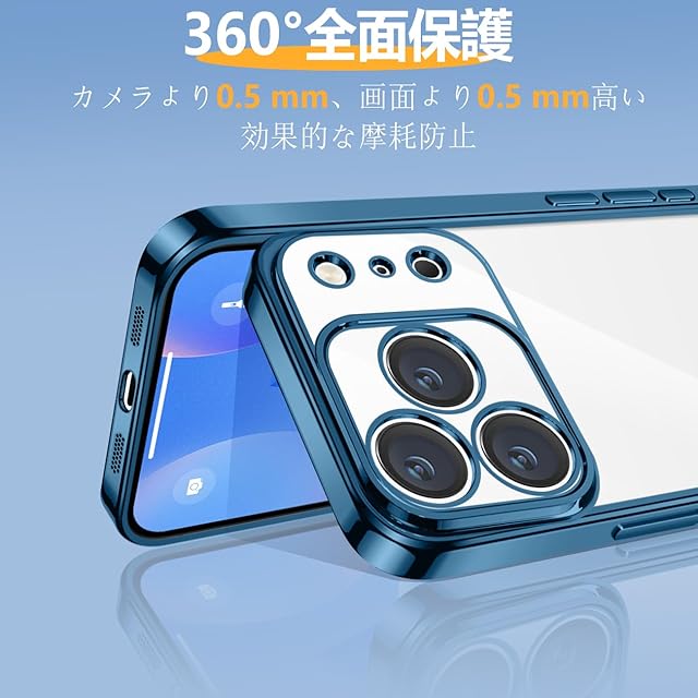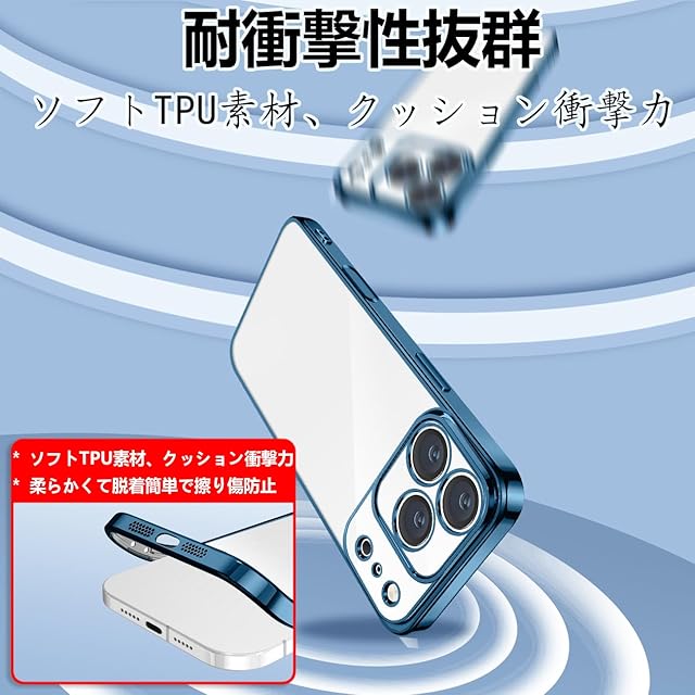 商品名:SATLITOG iPhone 17 Pro 用の ケース クリア 耐衝撃 アイフォン17 Pro 用の カバー 透明 スマホケース メッキ加工 完全な保護 黄変防止 落下防止 ファッション 薄型 軽量 TPU 柔らかい ワイヤレス充電 人気 (ブルー)