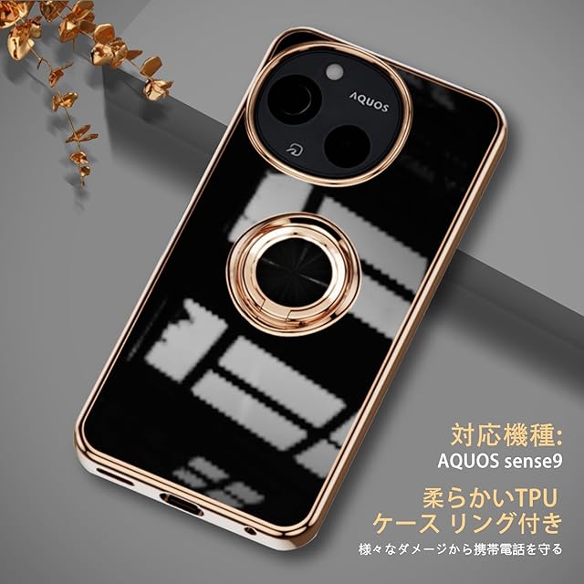 LuFiYa スマホケース AQUOS sense9 5G 用 SH-53E | SHG14 ケース リング付き カバー TPU素材 スタンド機能 スマホケース 軽量 耐衝撃 薄い 擦り傷防止 落下防止 車載ホルダー 360°回転 ケース AQUOS sense9 5G 用 (ブラック)