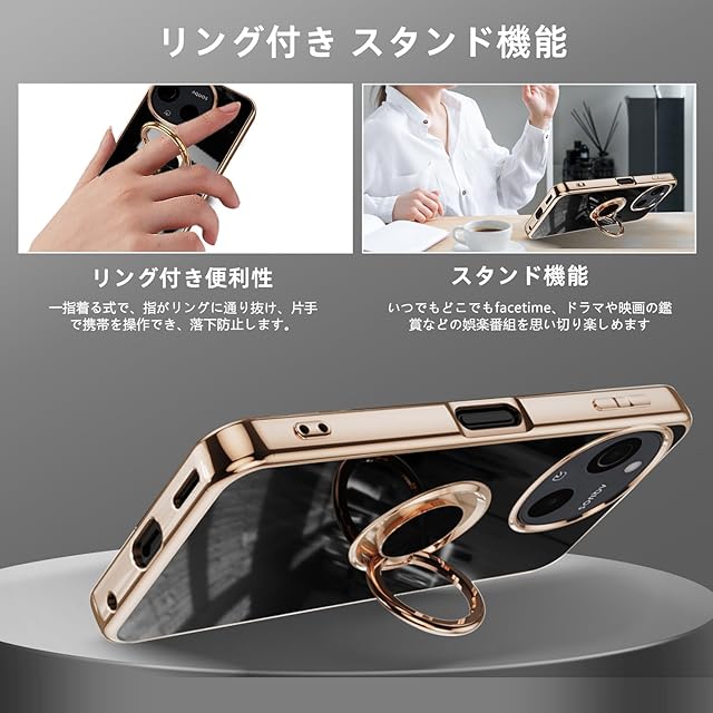 [リング付き&スタンド機能] 360度回転スタンド、180角度調節自由自在に使用可能です。マグネット式車載スマホマウントホルダー に対応でき。ケースを横置きにするとスタンド機能になり、片手で携帯を操作でき、滑り止め、強奪、落下などのことを防げます。いつでもどこでもfacetime、ドラマや映画の鑑賞などの娯楽番組を思い切り楽しめます