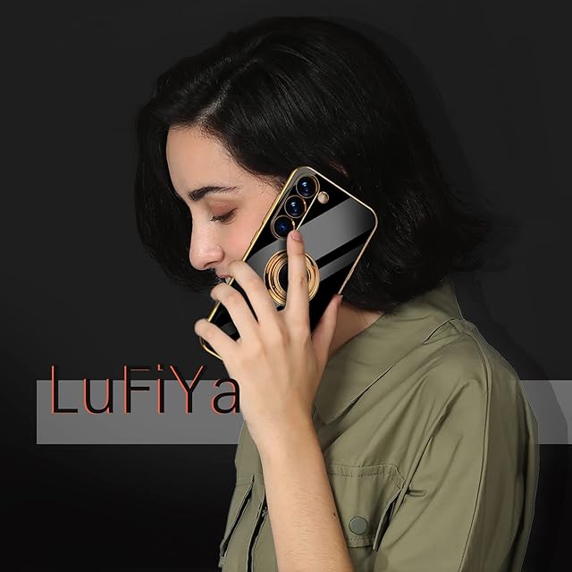 商品名:LuFiYa Samsung Galaxy S23 5G 用 ケース リング付き カバー TPU素材 スタンド機能 ギャラクシーS23 用 スマホケース 薄い 擦り傷防止 落下防止 車載ホルダー 360°回転 ケース Galaxy S23 5G 対応 (ブラック)