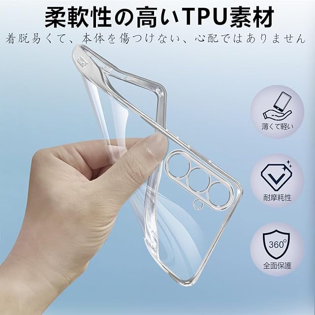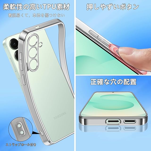 商品名:【FULEEYUHN】Samsung Galaxy S25 ケース クリア ギャラクシー S25 カバー 透明 TPU素材 耐衝撃 薄型 軽量 SC-51F SCG31 対応 韓国 ファッション スマホケース メッキ加工 黄変防止 人気 ストラップホール付き ワイヤレス充電対応(シルバー)